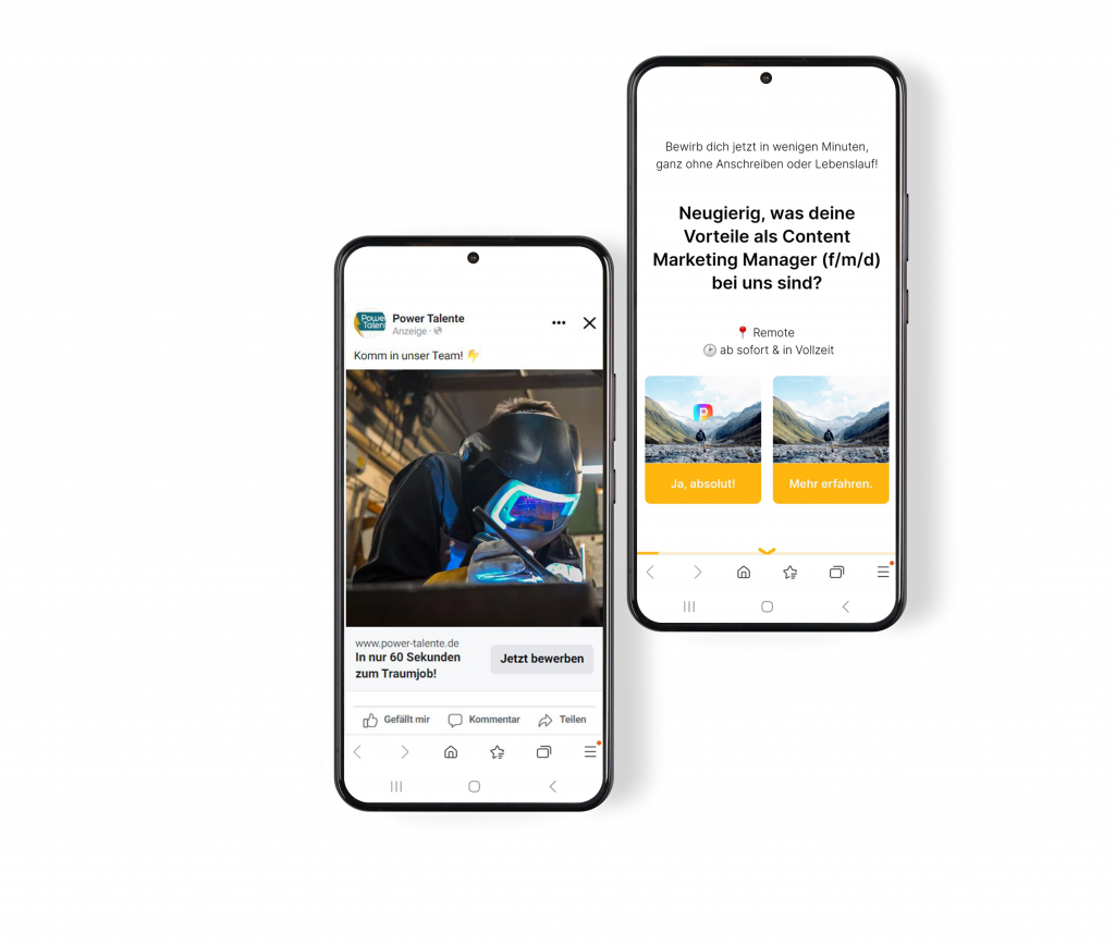Bewerber*innen klicken sich auf allen Endgeräten durch kurze und optisch ansprechende Fragebögen, die Sie als Arbeitgeber*in optimal darstellen und gleichzeitig Eigenschaften abfragen, die Kandidat*innen mitbringen sollen.